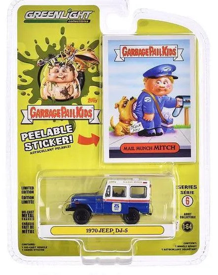 Greenlight Collectibles Garbage Pail Kids Series 6 – Mail Munch Mitch 1970 Jeep DJ-5 1/64 Scale Diecast Model