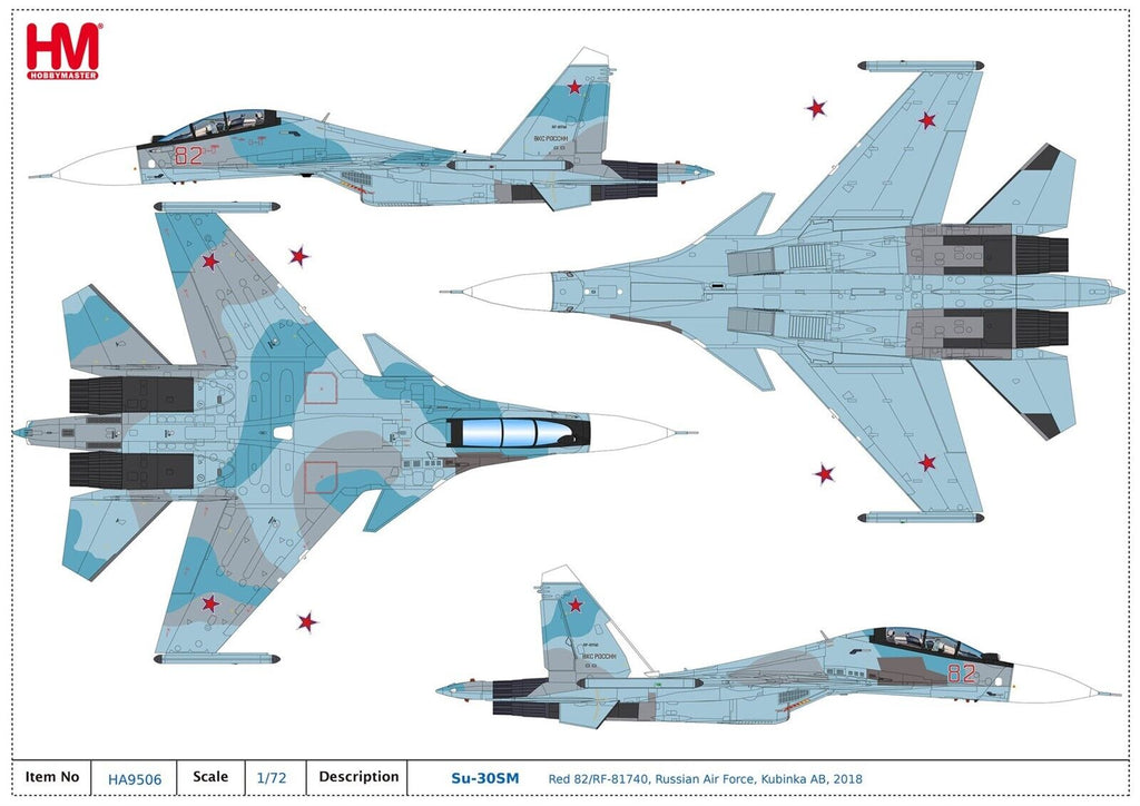 Hobby Master Sukhoi Su-30SM Flanker H “Red 82” (Russian Air Force 2018) 1:72 Scale Diecast Model