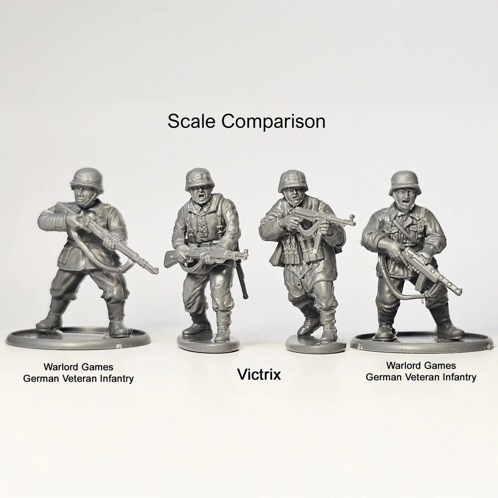The Victrix Ltd Late War German Infantry & Heavy Weapons set brings unparalleled realism and versatility to your WWII collection. Featuring 14 unique body designs and 28 interchangeable heads, this massive 44-figure set lets you build a full platoon of late-war German soldiers complete with heavy weapons, support elements, and command figures.