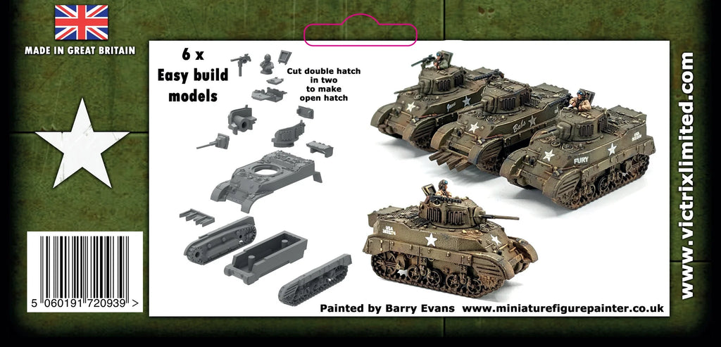 Victrix Ltd M5A1 Stuart Light Tank 1:144 (12mm) Scale Historical Miniatures Set (Set of 6)